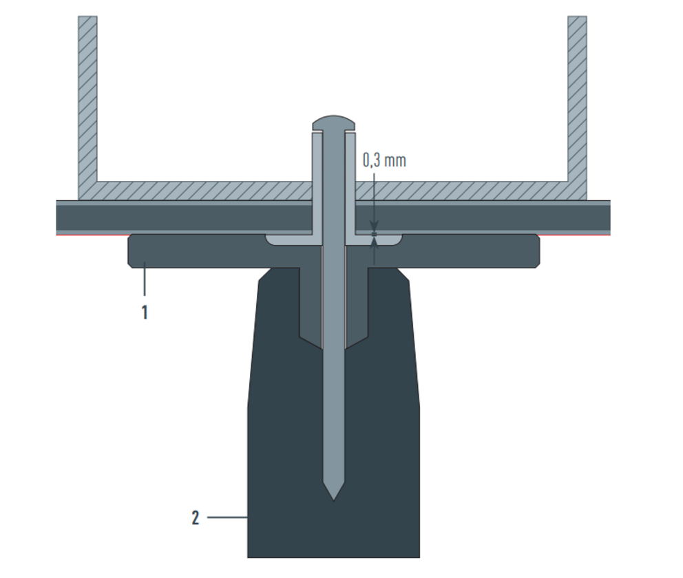 Vi rekommenderar för monteringen ett blindnitningsverktyg med en inställningskraft på 10 000 N, till exempel Accubird PRO från företaget Gesipa.