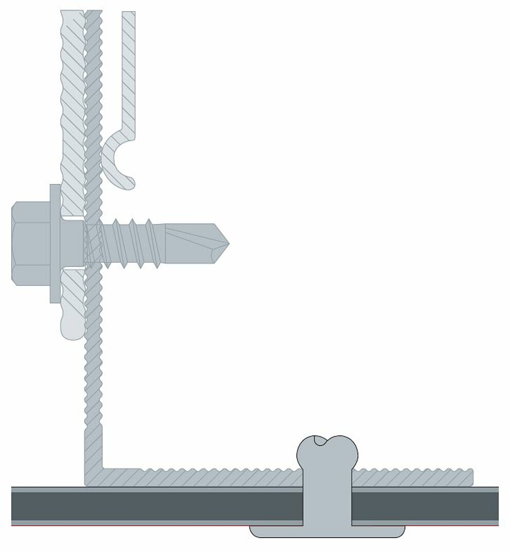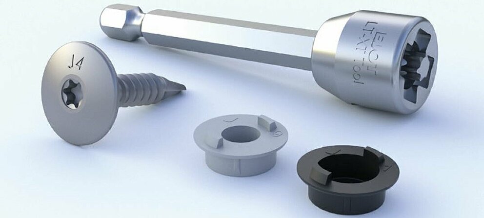 Det mekaniska skruvade infästningssystemet består av en fasadskruv, en specialbit LT-XT TOOL TX 25 och passande fästhylsor och glidpunktshylsor.