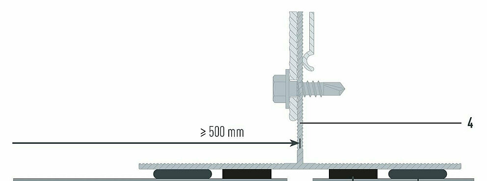 Ta hänsyn till materialutvidgning genom att inte använda supportprofiler för underkonstruktionen som är längre än 3 000 mm. Säkerställer att underkonstruktionens profiler inte skarvas in i en platta eftersom det då skapas en fast anslutning.