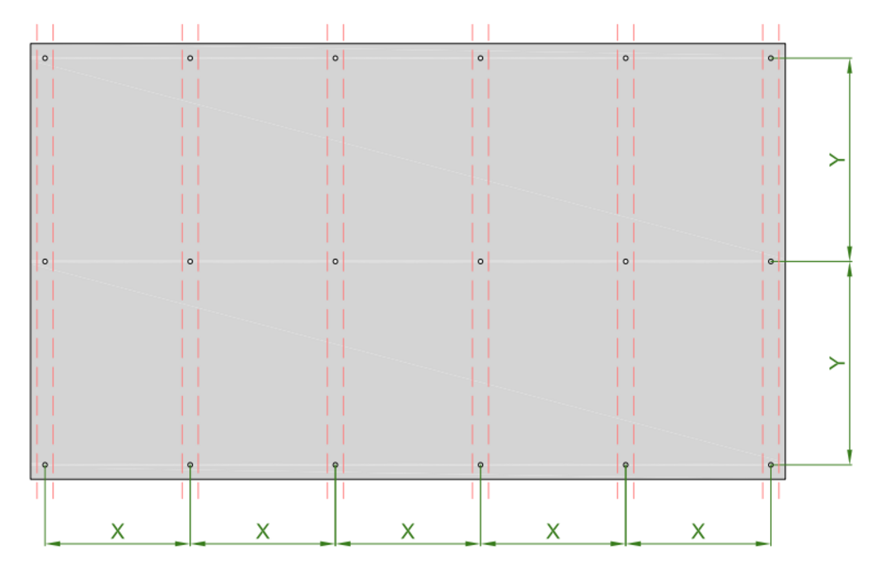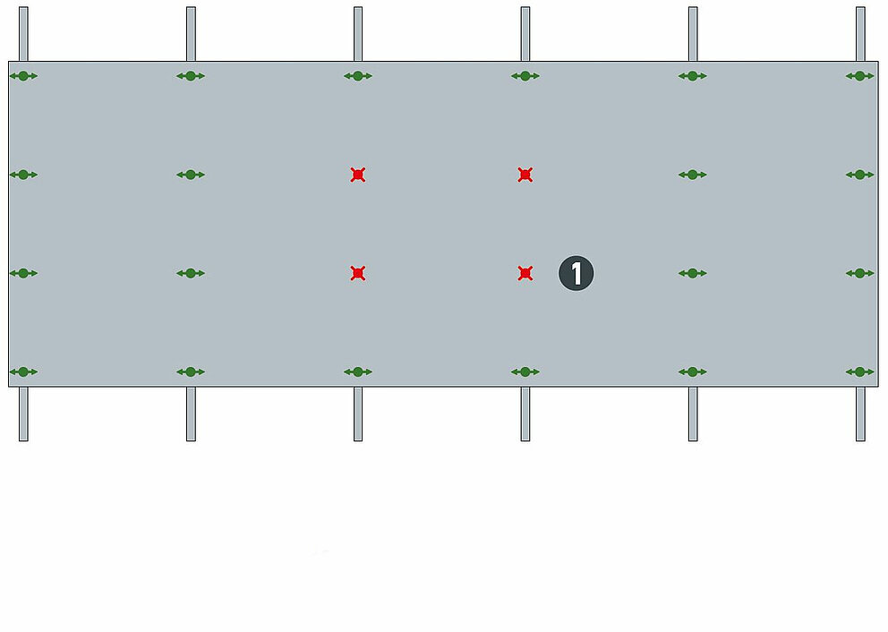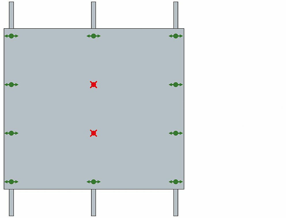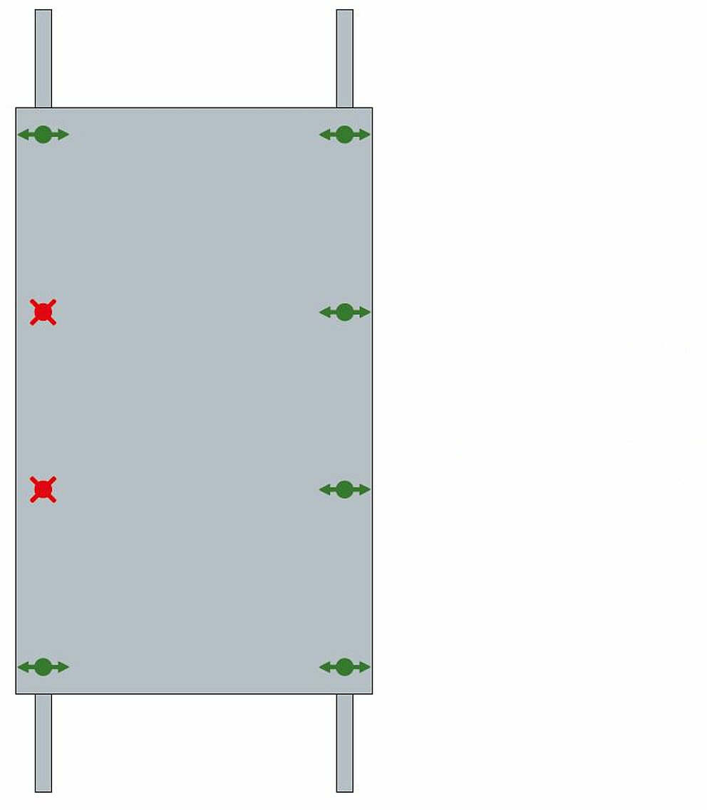 Oavsett plattstorlek krävs minst 2 fasta punkter för mekanisk infästning av varje platta. Endast på detta vis säkerställs att plattan sitter stabilt positionerad och inte kan förvridas.