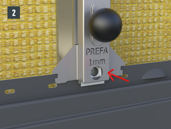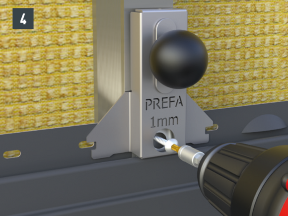 Avståndet mellan stormclips och Siding-fjäder är avgörande för en montering och materialutvidgning utan deformation. Av denna anledning ska du enbart montera stormclips med lämplig monteringshjälpare för att säkerställa ett jämnt avstånd.