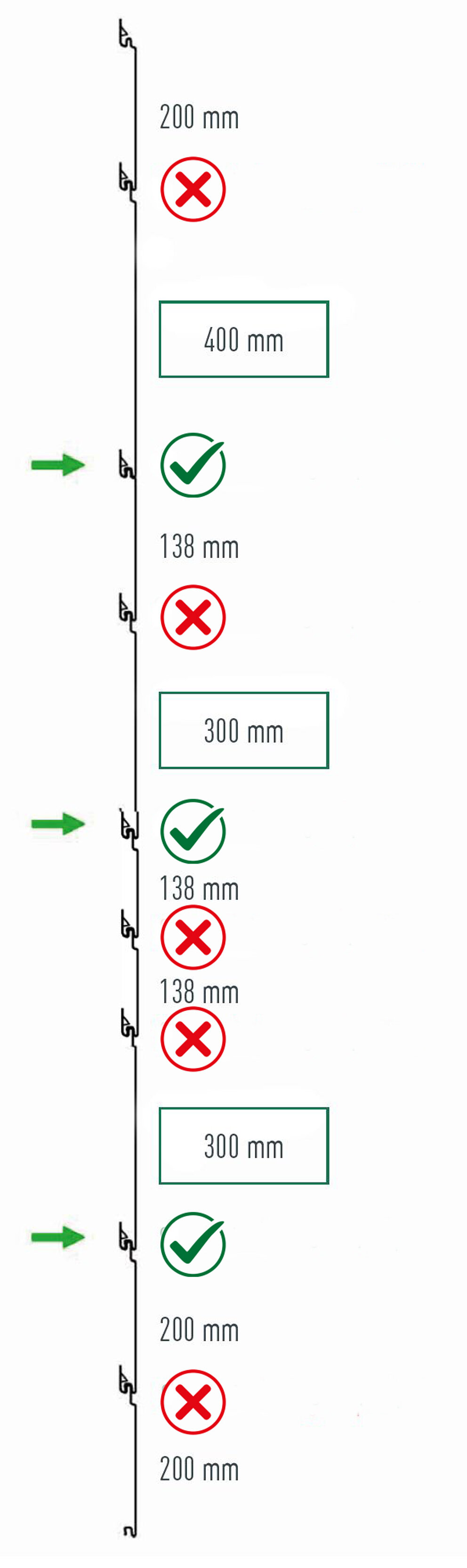 Om du t.ex. startar fasaden med en Siding 400×1,2 mm måste du fästa stormclipsen i startprofilen.