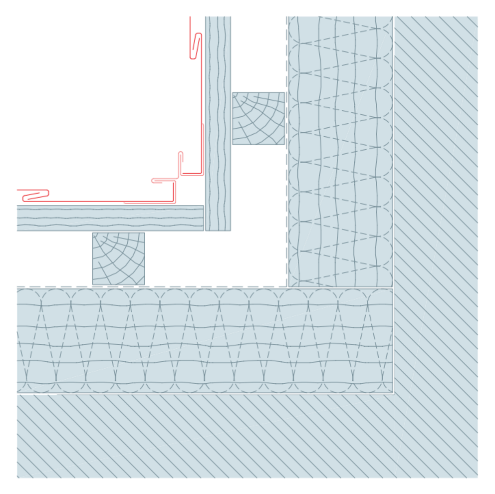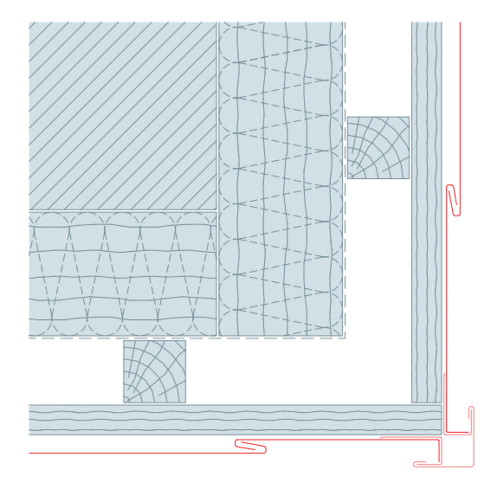 Hörnvinkeln placeras sedan och fästs på båda sidor med ett omslag på fickprofilerna.