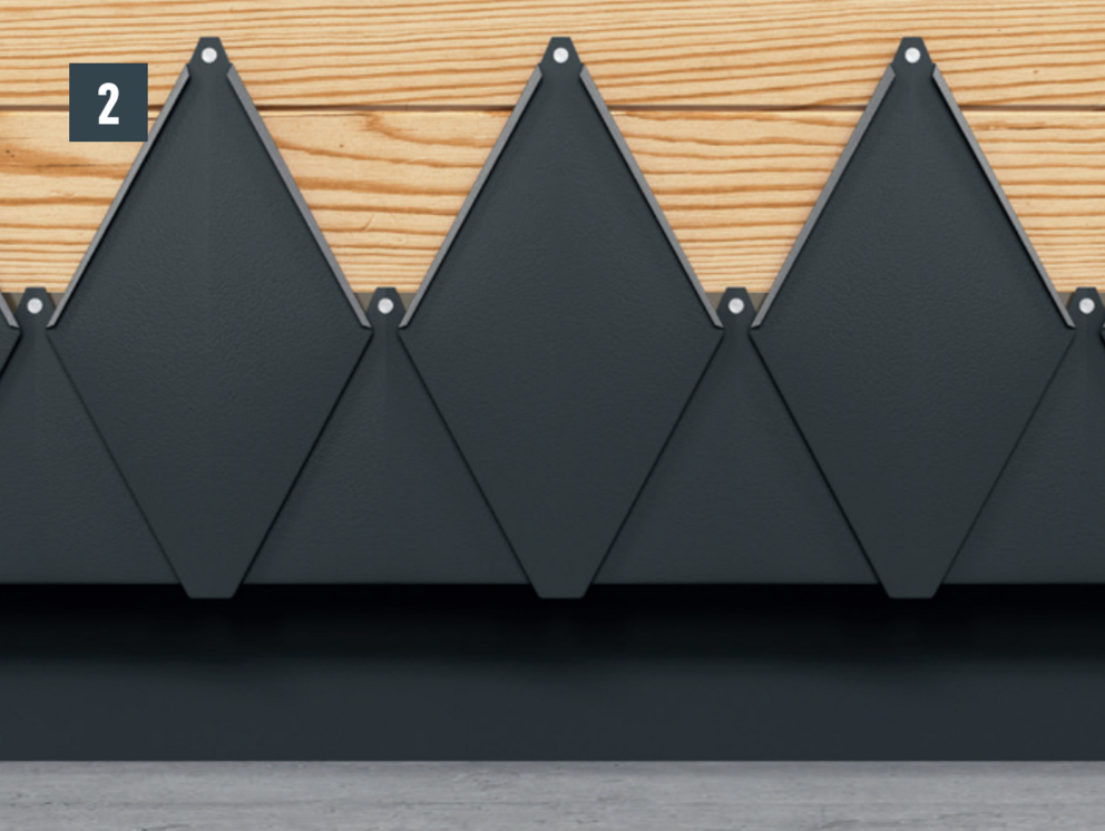 Infästningen av varje liten romb sker direkt genom det förstansade infästningshålet med en medföljande klammerspik 2,8/25.