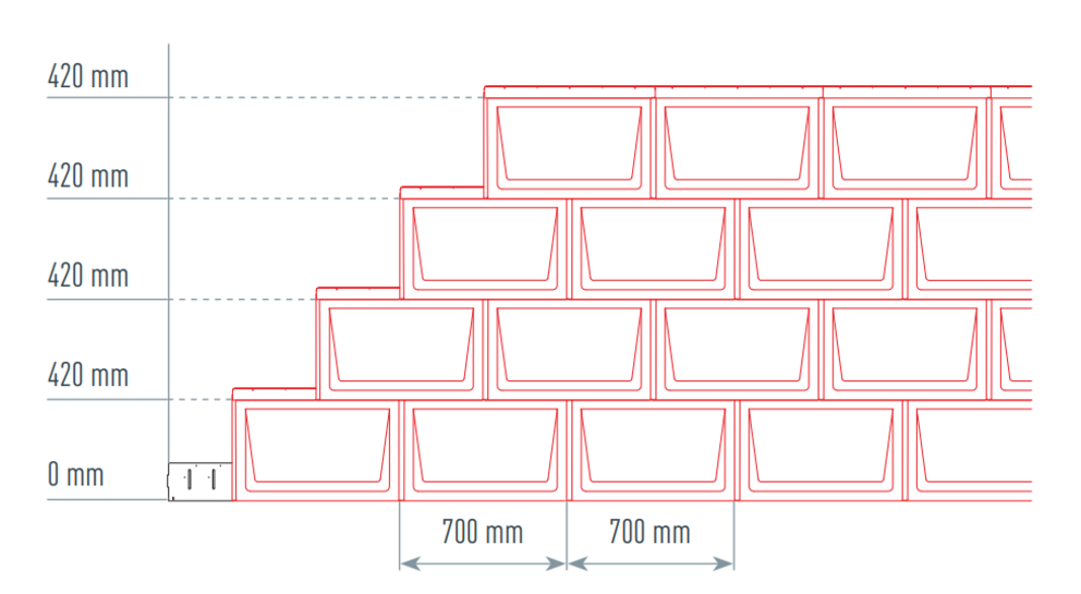 Vertikal snörning: 700 mm (varannan rad förskjuten med 350 mm)