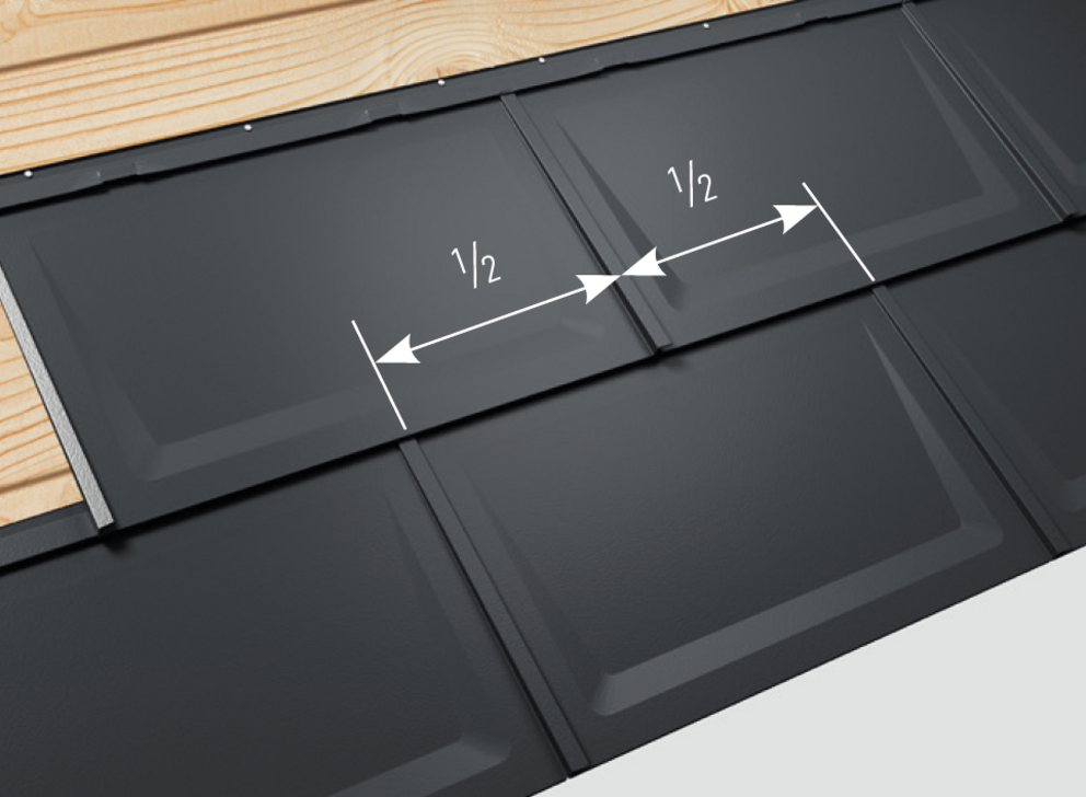 Takplattor R.16 läggs alltid i förband, dvs. med förskjuten vertikal skarv. För att underlätta montering med halv förskjutning finns en markering på den övre falsen hos takplatta R.16.
