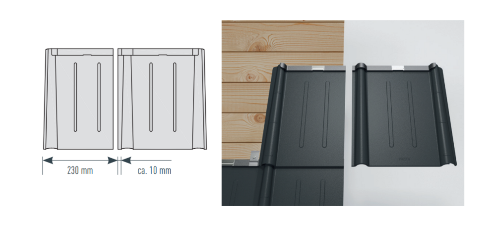 230 mm möjliggör arbete utan spill vid sidoavslutet.