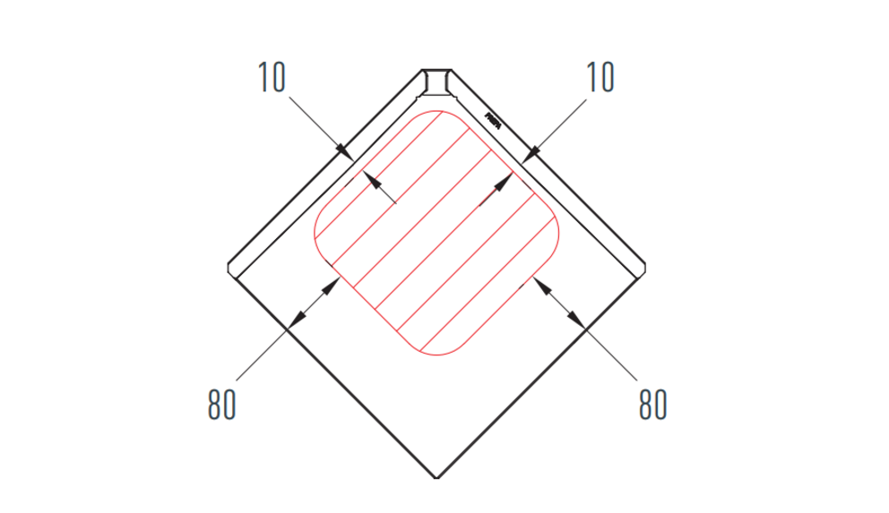Beakta tillåtet monteringsområde på väggromb 29 × 29 om du monterar något på fasaden (t.ex. lampor). Om det inte går att hålla sig inom monteringsområdet ska en underlagsskiva falsas in.