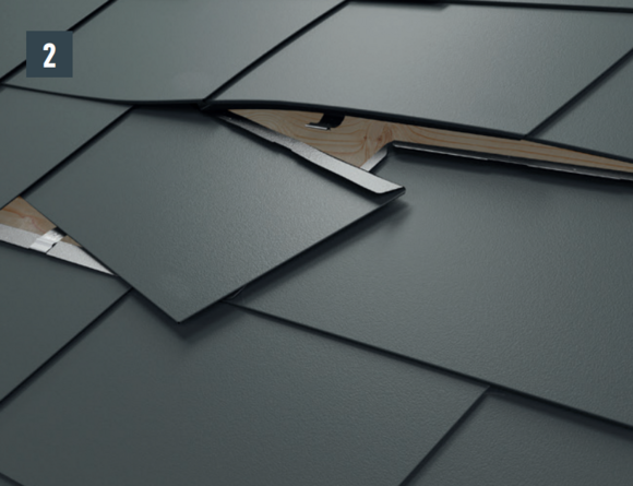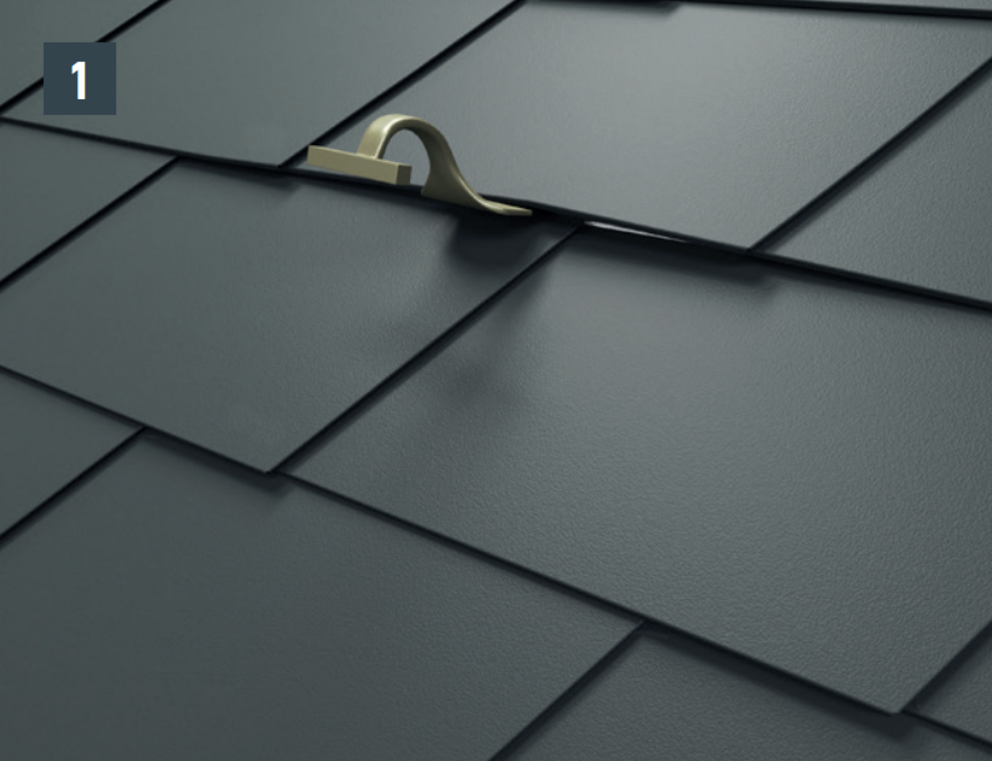 • Öppna klammern och ta bort shingeln som ska bytas ut (bild 2).