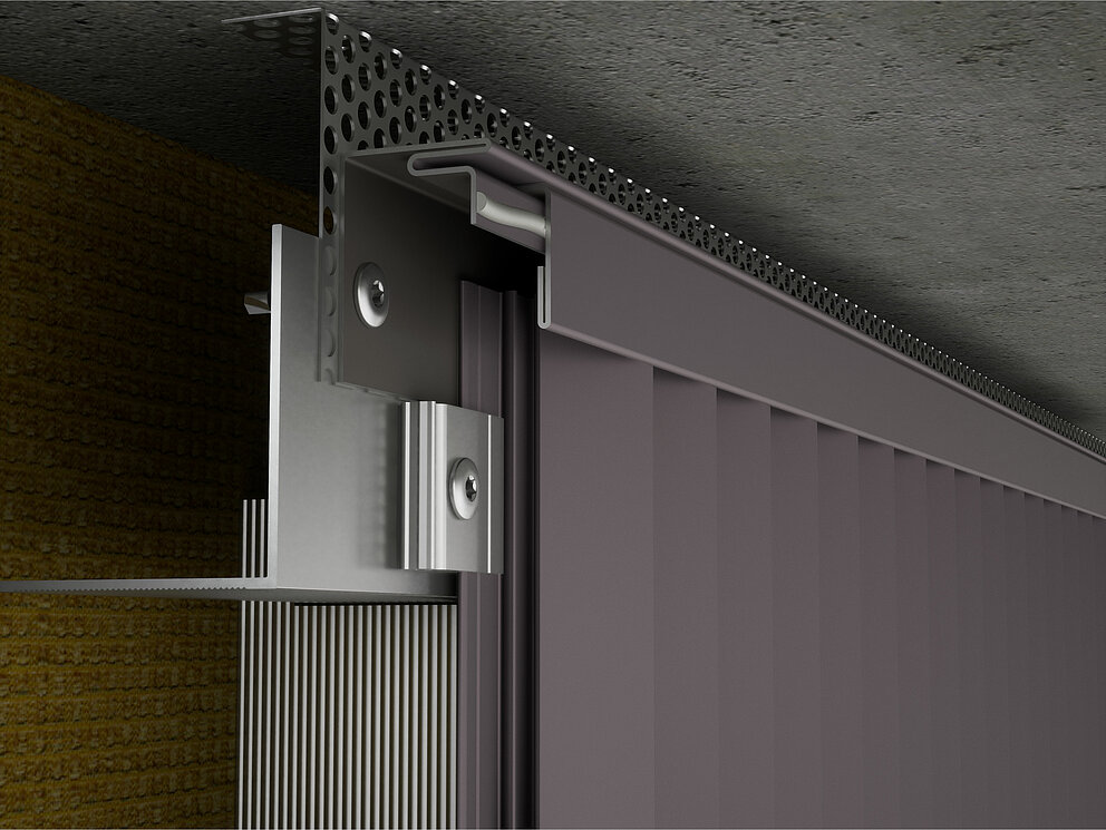 För att bakventilera fasaden på fackmässigt sätt ska det finnas en frånluftsöppning vid den övre avslutningen. Montera en perforerad plåt bockad i 90° vid frånluftsöppningen (t.ex. takfotsinklädnad) för att uppnå högre styvhet.