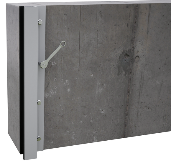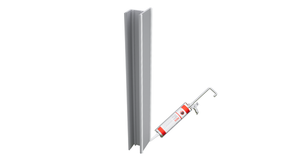 • Applicera två strängar av vattentät och permanent elastisk tätningsmassa på baksidan av grundprofilen. Vid direkt kontakt med betong rekommenderas ett skyddande skikt på baksidan av grundprofilen.