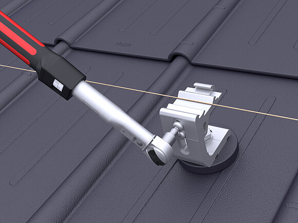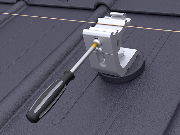 Ställ in skenhållarna på respektive yttre PREVARIO 3.S till medelhöjd. Spänn upp en snöre för montering och rikta in återstående skenhållare parallellt med taket och i höjdled. Dra åt den övre skruven på de redan inriktade skenhållarna med ett åtdragningsmoment på 20 Nm.