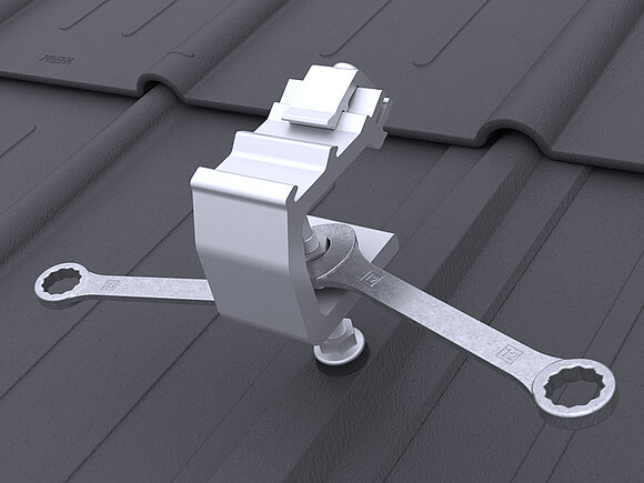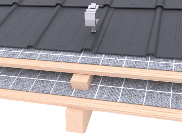 Vid överlappning eller en mittrilla i takplattorna direkt över takstolarna (i monteringsområdet för stockskruven) kan Sunny Spezial användas istället för att montera en underlagsskiva.