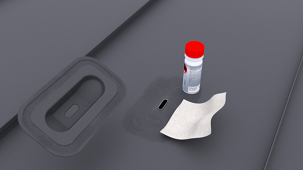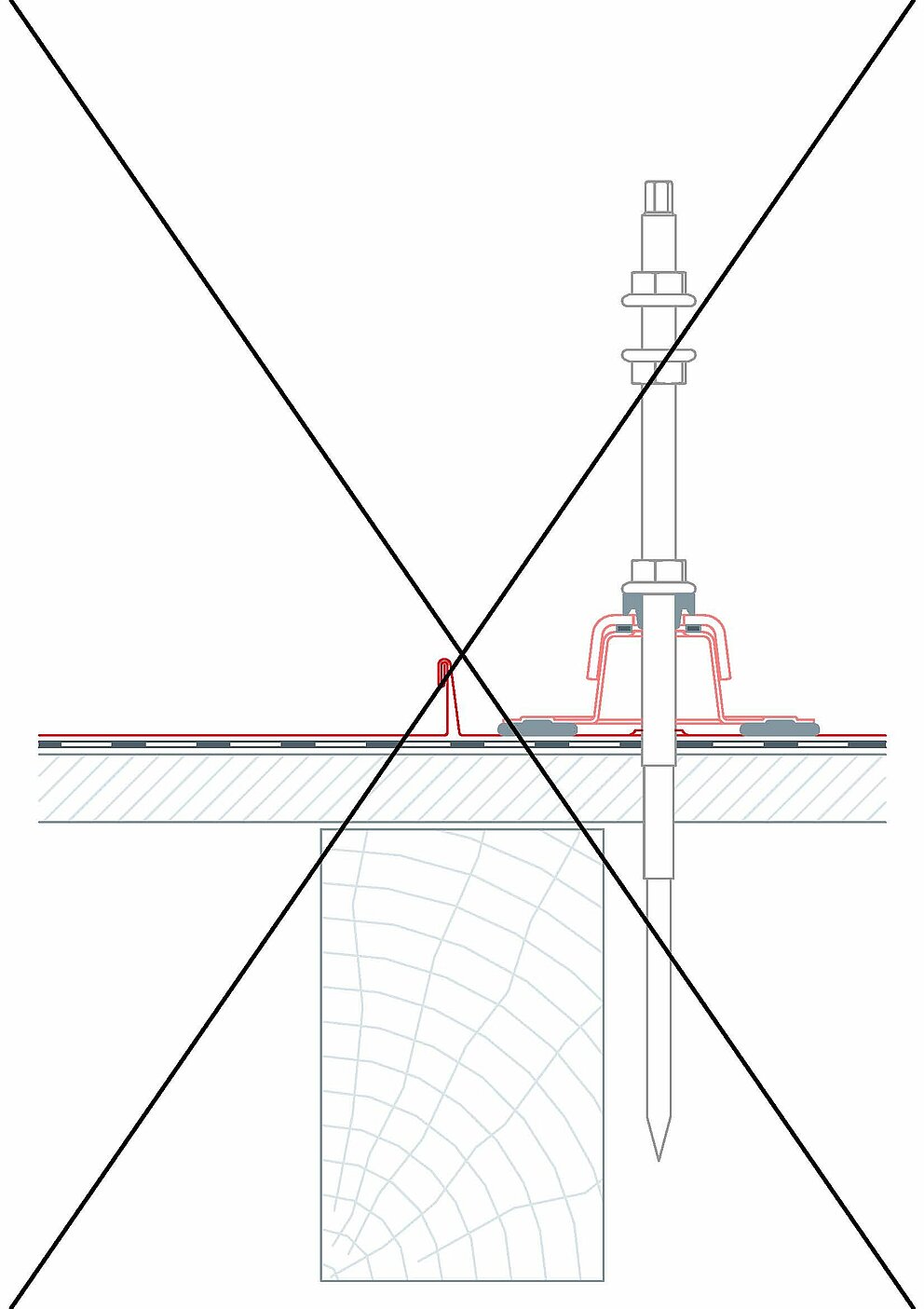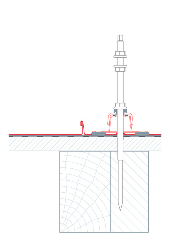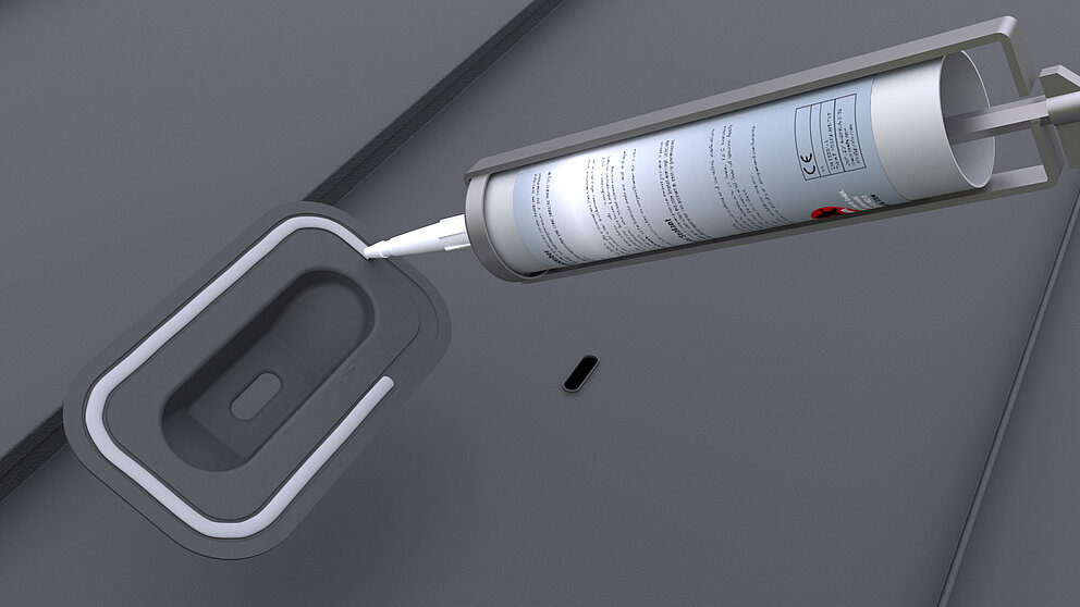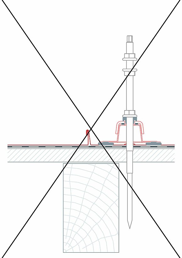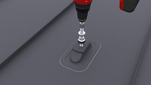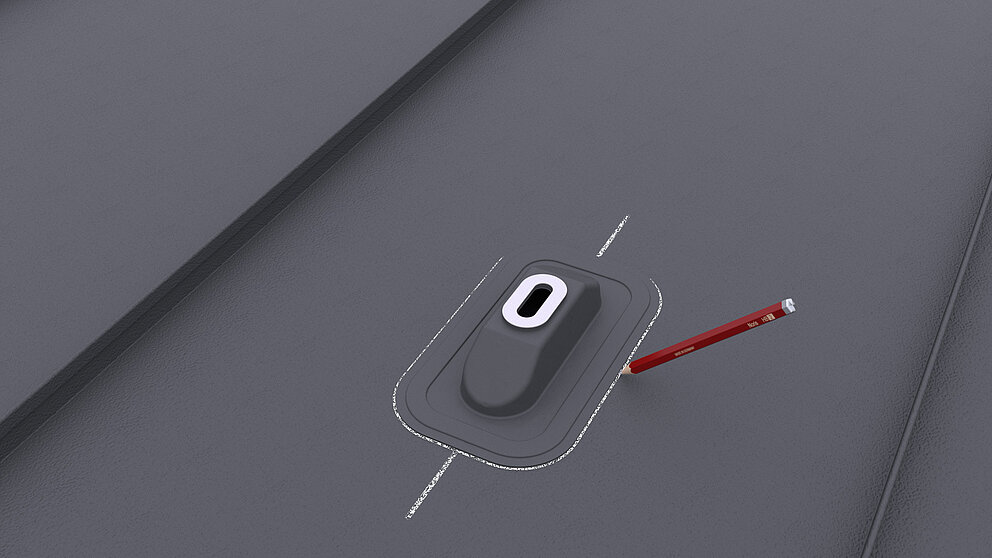 Slipa limytan på taktäckningen och på PREVARIO Sunny. Förse avlångt hål eller borrning med fläns. Rengör slipade limytor med rengöringsmedel. Applicera en limsträng (⌀ 10 mm) på den slipade och rengjorda Sunny. Tryck fast PREVARIO Sunny i mitten. Sätt på kalotten och skruva i stockskruven med borrmaskin (hylsnyckel NV 9 mm). Inträningsdjup i den bärande underkonstruktionen (takstolar): minst 80 mm.