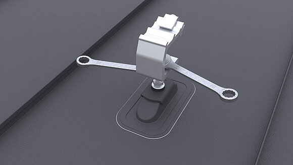 Montering på hel panel eller läkt möjlig. För PREFA-takelement med små format kan det vara nödvändigt att montera en underlagsskiva för att kunna montera PREVARIO Sunny – t.ex. om det finns en fals i monteringsområdet ovanför takstolen.