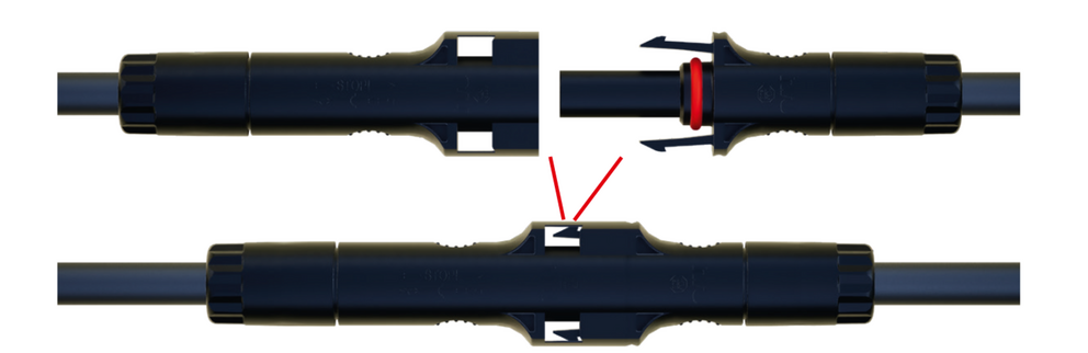 Strängmatarledningar och -returledningar levereras förmonterade från fabrik. Kabeländarna har vardera en solcellskontakt och ett solcellsuttag, som skyddas av förmonterade täckhattar.