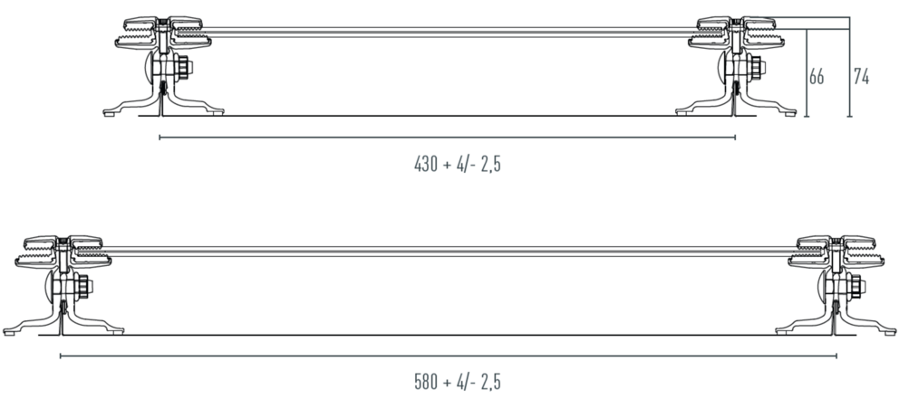 Observera att paneler med dubbel bottenfals måste trimmas 10 mm för att uppnå ett axelavstånd på 430/580 på grund av den lägre falsförlusten! Montering på paneler med dubbel toppfals är inte möjlig på grund av den större falsförlusten på 10 mm.