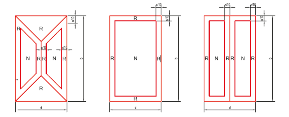 e = b eller 2*h (det mindre värdet är avgörande) – avståndet gäller grundytan