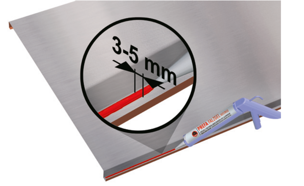 Beakta bearbetningstemperaturen för PREFA-falsgelen: 0 °C till ca +70 °C.