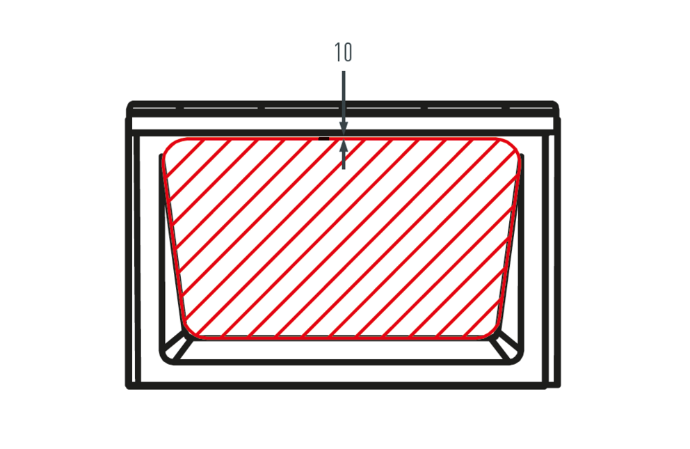 Vid montering av taktillbehörsprodukter ska du vara uppmärksam på tillåtet monteringsområde på takplattan R.16. Följande ritning visar monteringsområdet för tillbehörsprodukter på fotplattor. Andra tillbehörsprodukter kan ha andra monteringsområden.
