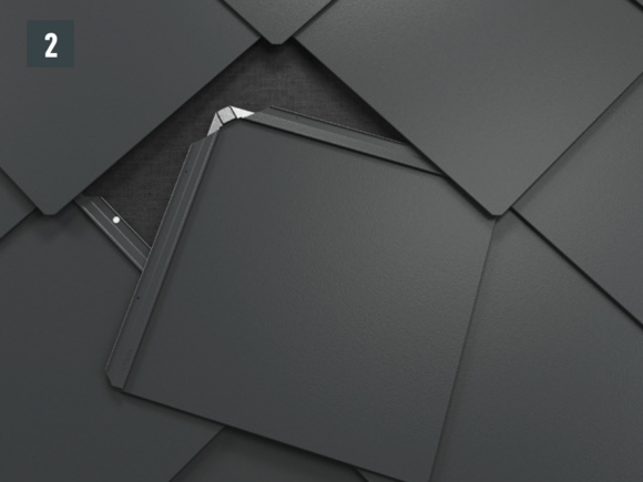 • Öppna infästningsfalsen på den nya takromben 44 × 44 lite grann, skjut den uppåt och sätt fast den (bild 3).