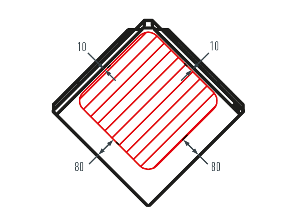 Vid montering av taktillbehörsprodukter ska du vara uppmärksam på tillåtet monteringsområde på takromberna 44 × 44. Följande ritning visar monteringsområdet för tillbehörsprodukter på fotplattor. Andra tillbehörsprodukter kan ha andra monteringsområden.