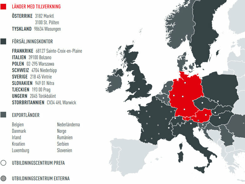PREFA Aluminiumprodukte GmbH har i mer än 80 år utvecklat, tillverkat och sålt tak-, solenergi- och fasadsystem av aluminium i Europa. Totalt omfattar PREFA-koncernen cirka 790 personer i 19 länder. Produktionen av över 5.000 högkvalitativa produkter sker uteslutande i Österrike och Tyskland. Varje år utbildas 4.850 installationspartners i 32 utbildningscenter i Europa. Det etablerade företaget är en del av gruppen av industrialister, Dr. Cornelius Grupp, som sysselsätter över 9.000 personer på över 40 produktionsanläggningar över hela världen.