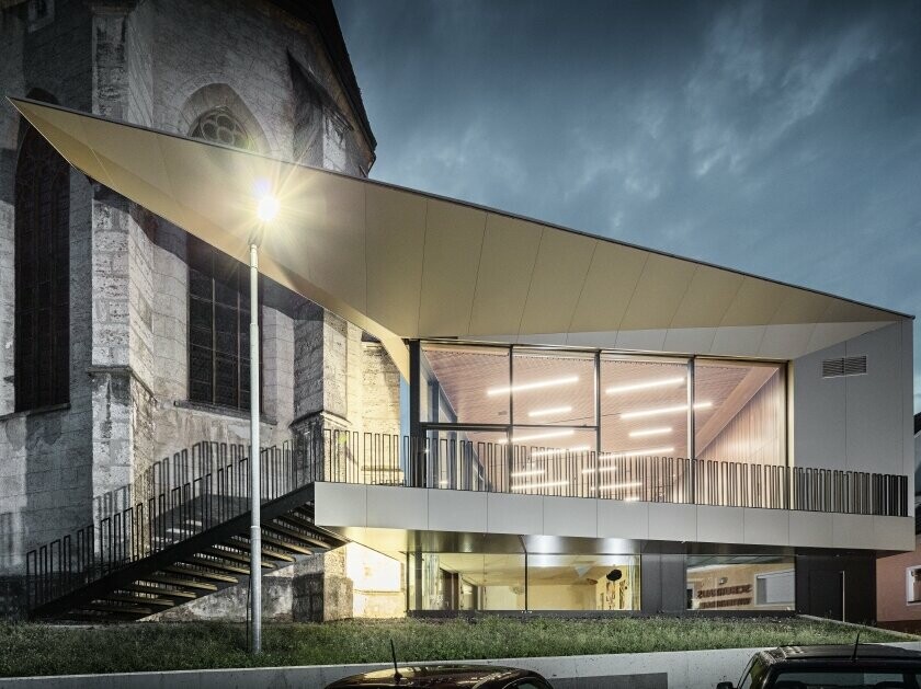 Församlingscentret FOKUS i hjärtat av kommunen Sierning i Oberösterreich (AT) ger den lokala samlingspunkten nytt liv. Efter 50 år var det gamla församlingshemmet uttjänt och man bestämde sig för att uppföra en ny byggnad. Arkitektbyrån ARKFORM i Linz under Klaus Landerls ledning lyckades vinna den utlysta tävlingen genom sitt både funktionella och estetiskt tilltalande koncept. Tvåvåningsbyggnaden integrerar kyrkans absid och bildar två spetsiga, avsmalnande baldakiner. Den bronsfärgade fasaden av PREFABOND aluminium-kompositskivor harmonierar färgmässigt med sandstenen i den gotiska församlingskyrkan. Den lyckade föreningen mellan gammalt och nytt har man församlingens öppna sinne och arkitekternas skicklighet att tacka för.