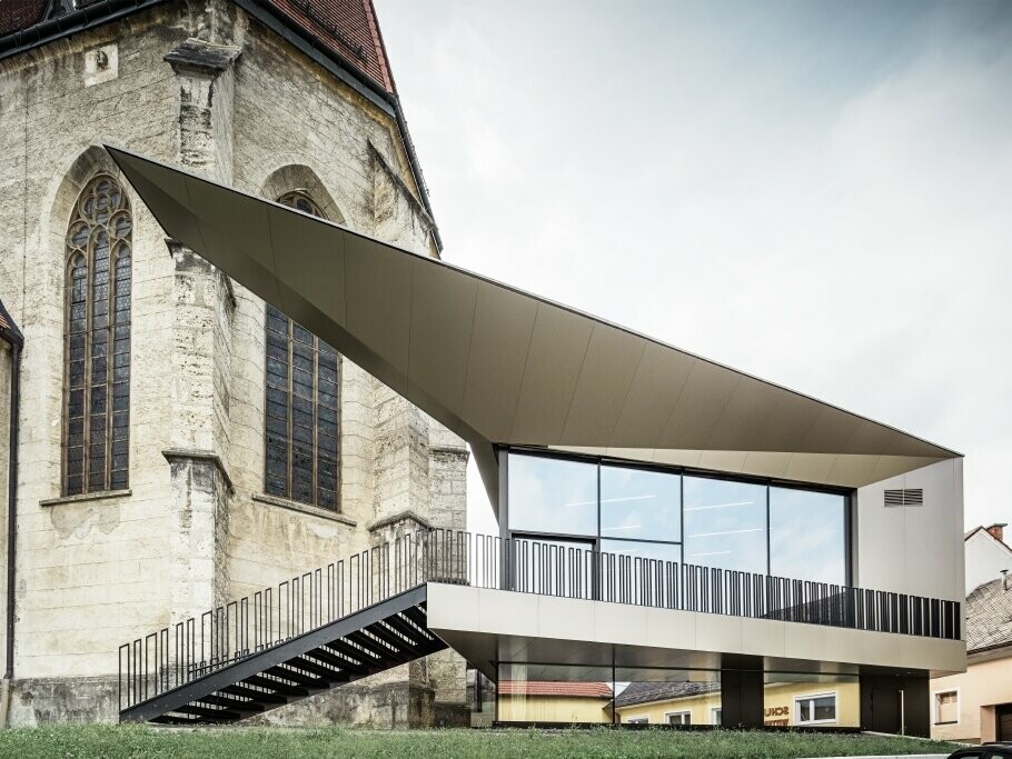 Församlingscentret FOKUS i hjärtat av kommunen Sierning i Oberösterreich (AT) ger den lokala samlingspunkten nytt liv. Efter 50 år var det gamla församlingshemmet uttjänt och man bestämde sig för att uppföra en ny byggnad. Arkitektbyrån ARKFORM i Linz under Klaus Landerls ledning lyckades vinna den utlysta tävlingen genom sitt både funktionella och estetiskt tilltalande koncept. Tvåvåningsbyggnaden integrerar kyrkans absid och bildar två spetsiga, avsmalnande baldakiner. Den bronsfärgade fasaden av PREFABOND aluminium-kompositskivor harmonierar färgmässigt med sandstenen i den gotiska församlingskyrkan. Den lyckade föreningen mellan gammalt och nytt har man församlingens öppna sinne och arkitekternas skicklighet att tacka för.