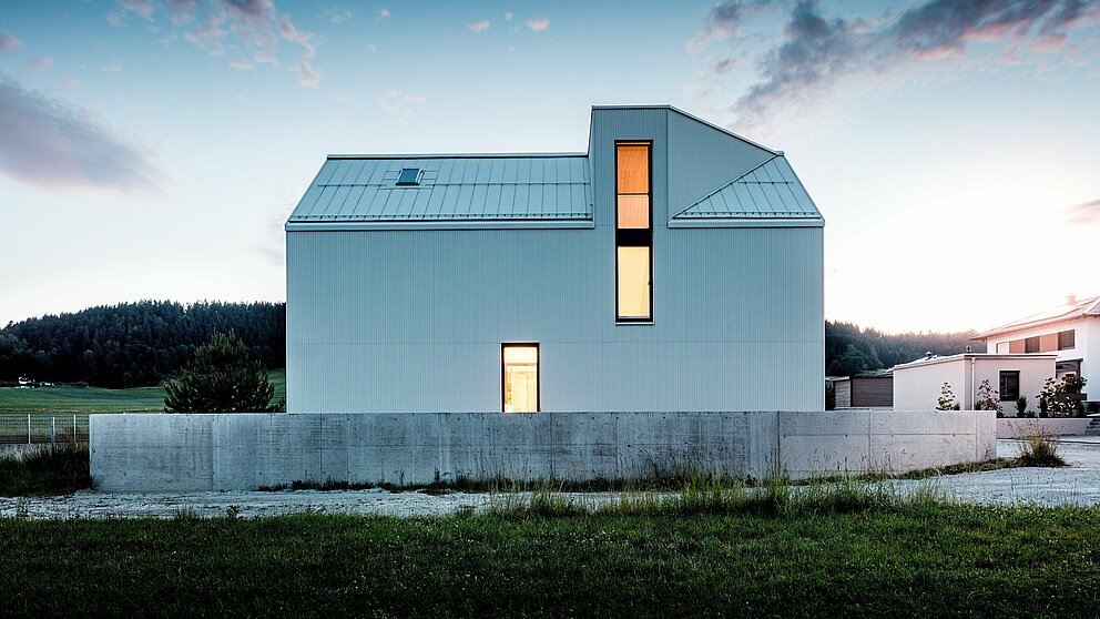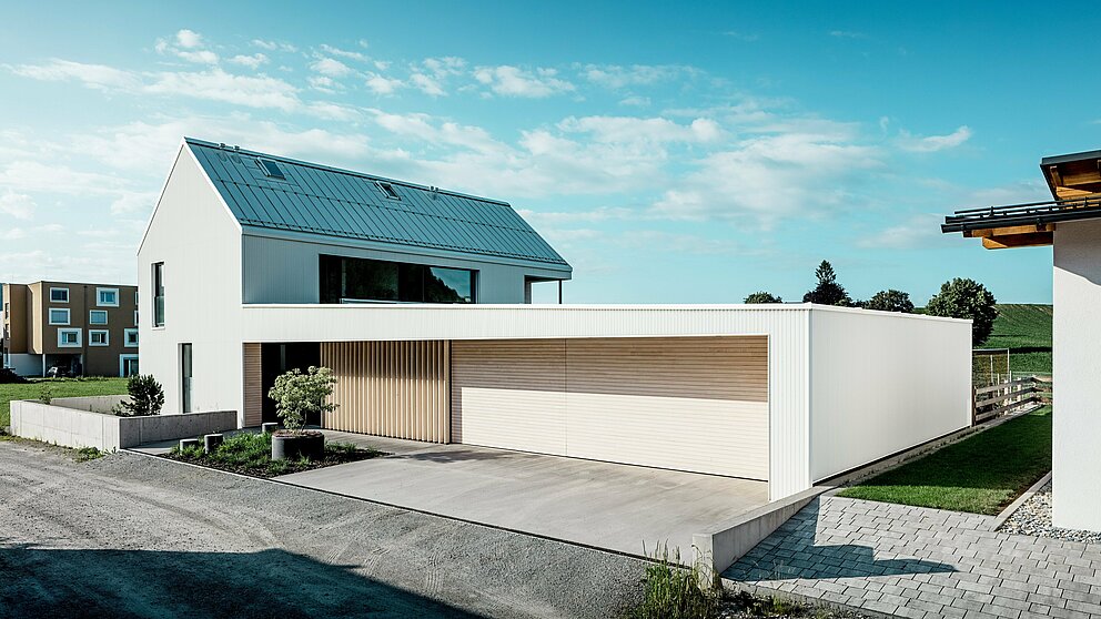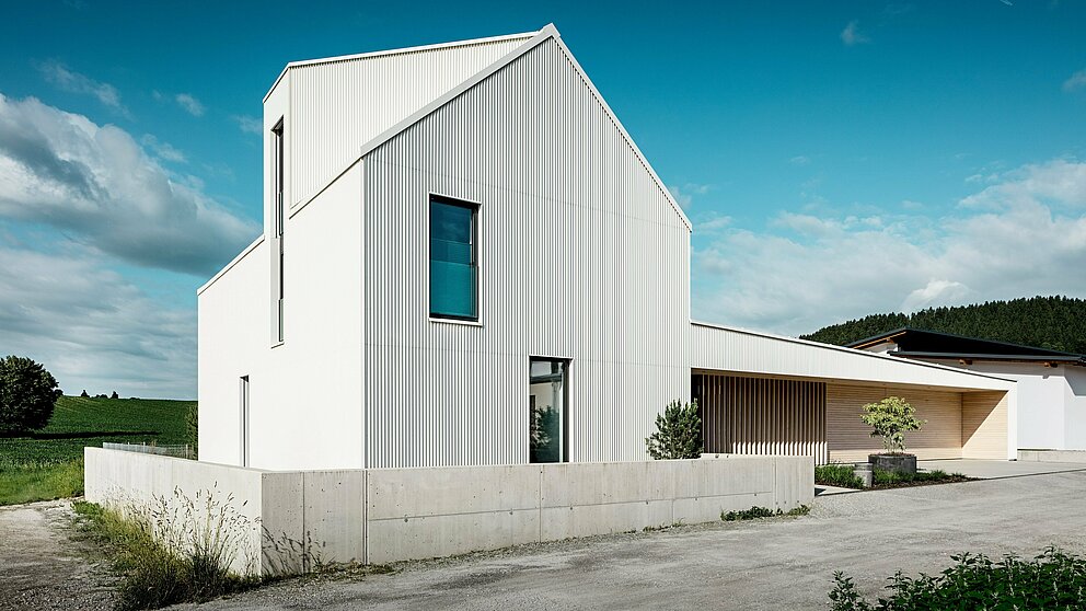 ”Mindre är mer”, konstaterade Mies van der Rohe redan. Bakom denna till synes enkla princip döljer sig dock ofta en hög konstruktiv komplexitet. För ett konsekvent monokromt uttryck är färgstabilitet en avgörande förutsättning för byggnadens långsiktiga visuella kvalitet. Därför valde arkitekterna tidigt en bakventilerad PREFALZ-fasad i rent vitt. Den smarta sicksackvikningen ger huset dess moderna elegans.