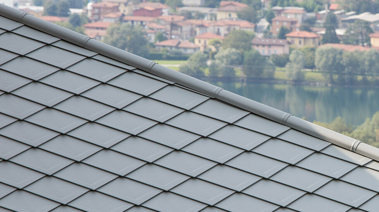 Det röda teglet präglade länge byggnadskulturen i norra Tyskland. Förskolans arkitekter har därför omtolkat den lokala byggnadskulturen och kombinerat det röda med byggmaterialet aluminium i rombform. Dessutom ska ytterbeklädnaden stå emot den starka vinden, den omtalade hårda brisen. Därför föll valet på PREFA tak- och väggromb 29 × 29 i P.10 oxidröd.