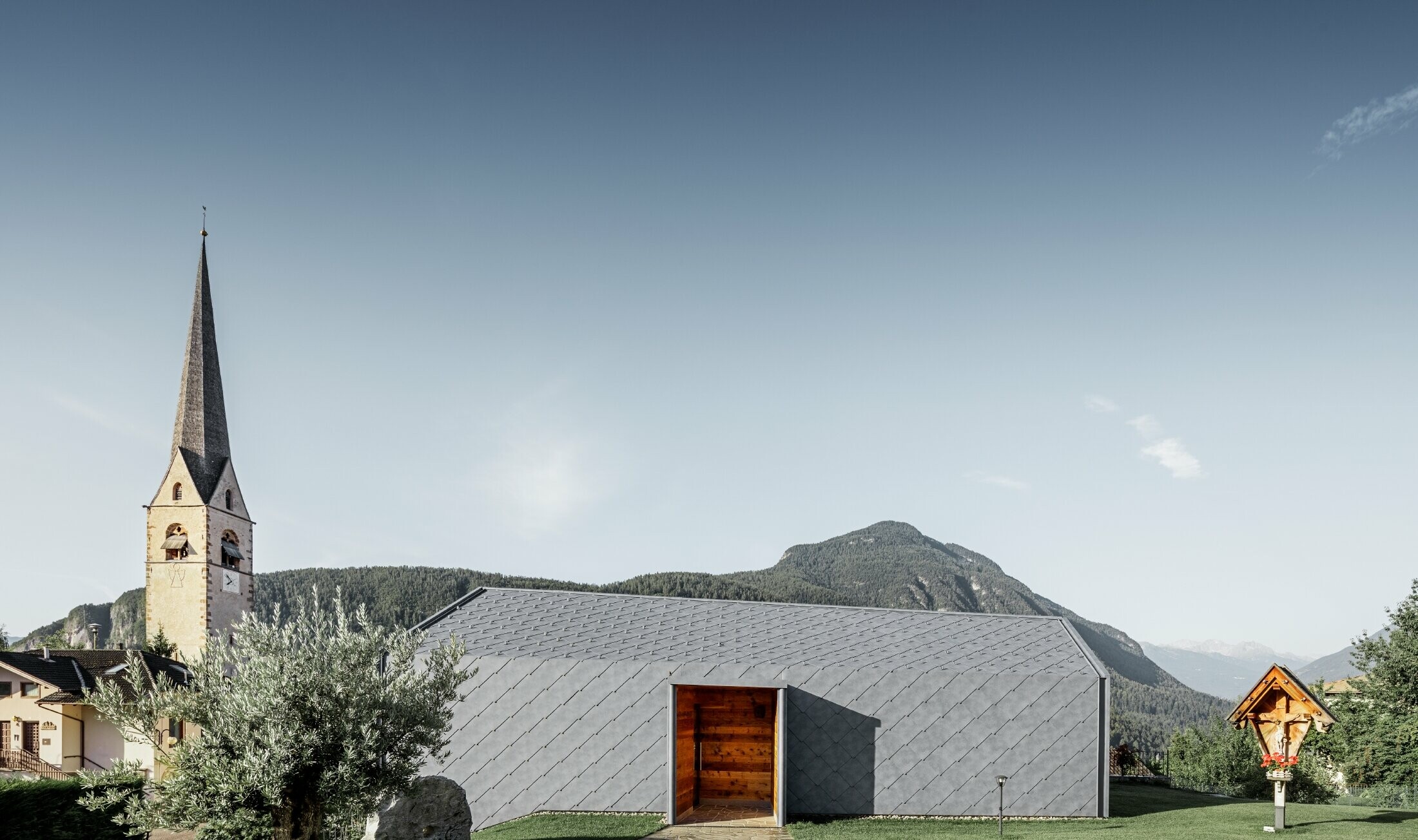 En byggnad med extravagant arkitektur vars enkelhet är bedräglig vid första anblicken. Anmärkningsvärt är icke-lineariteten, inte en enda vägg är arrangerad i en 90-graders vinkel. Bergskedjorna bakom var en inspirationskälla för byggnadens form, medan de stengrå tak-och väggromberna från PREFA sträcker sig över hela byggnaden i stil med klipporna.